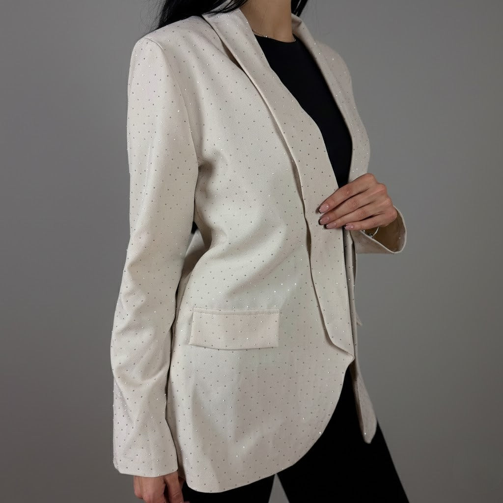 Бежов блейзър с камъчета