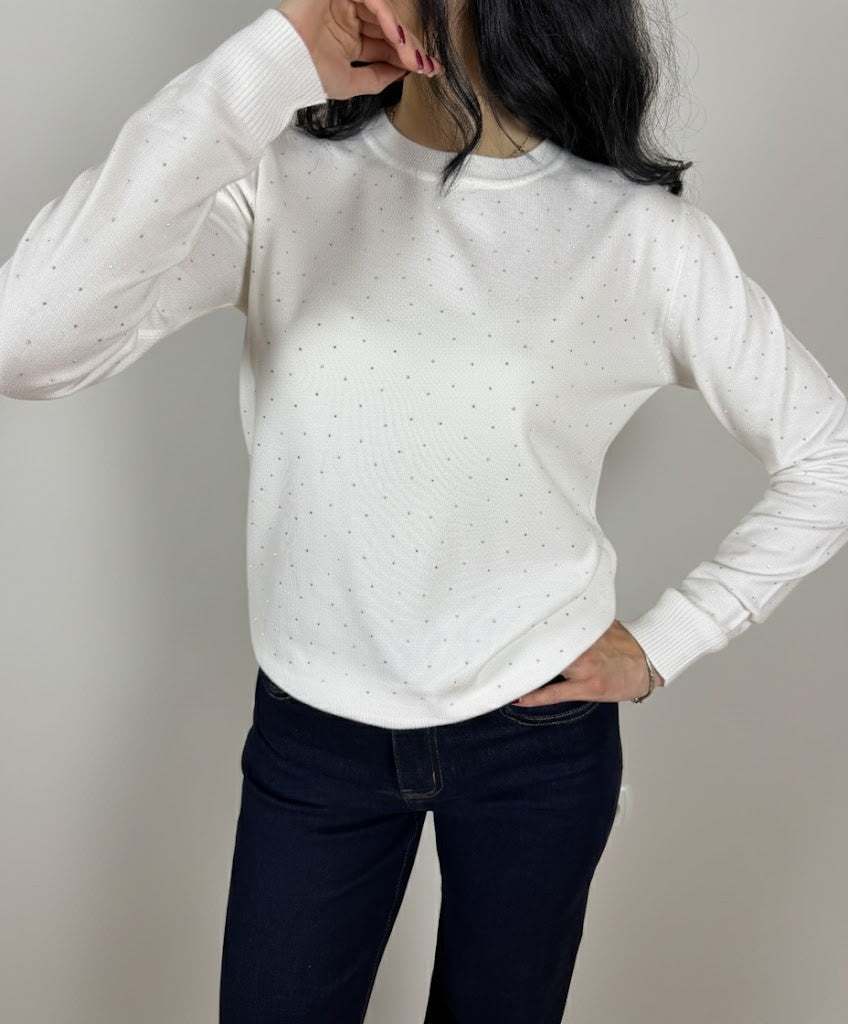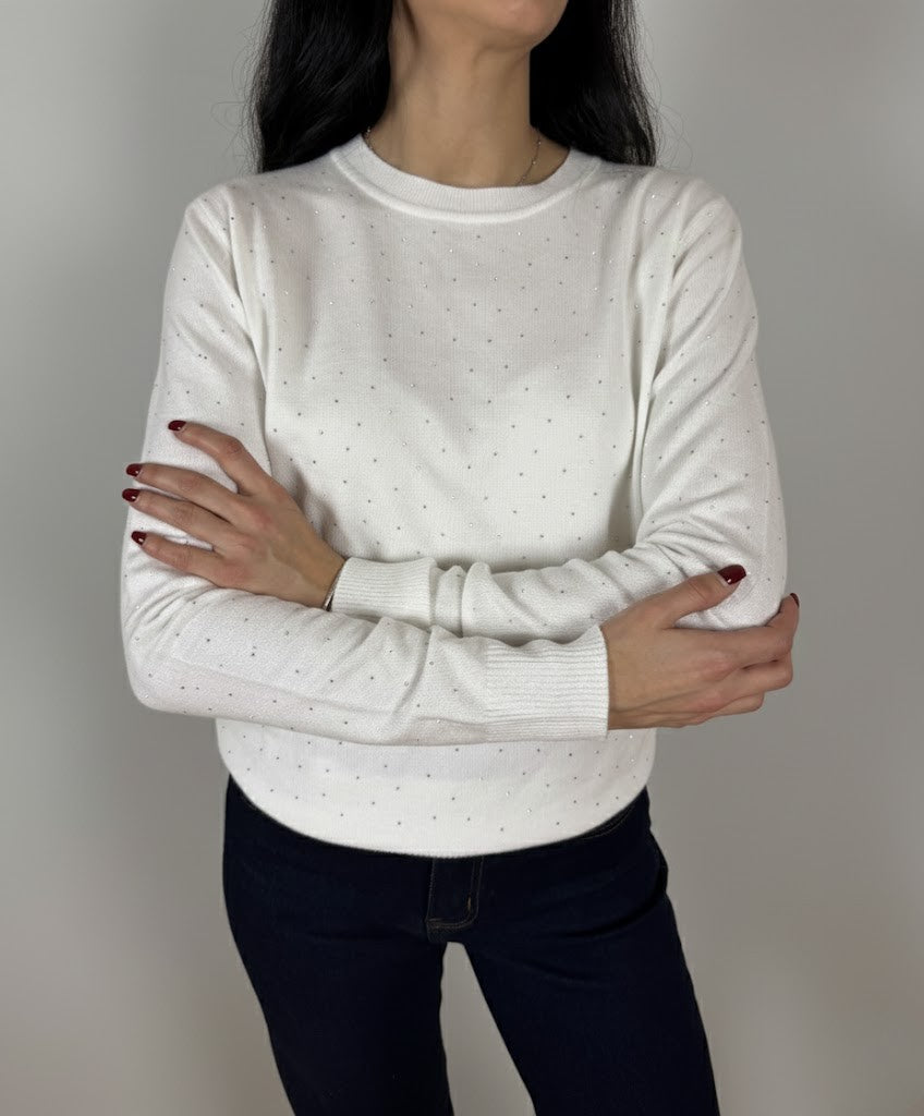 Пуловерът с малки камъчета предлага стилен и комфортен външен вид за ежедневието. Моделът е с височина 168 см. Кашмирът носи удобство и лекота, подходящи за всички поводи, от неформални дни до по-официални срещи.