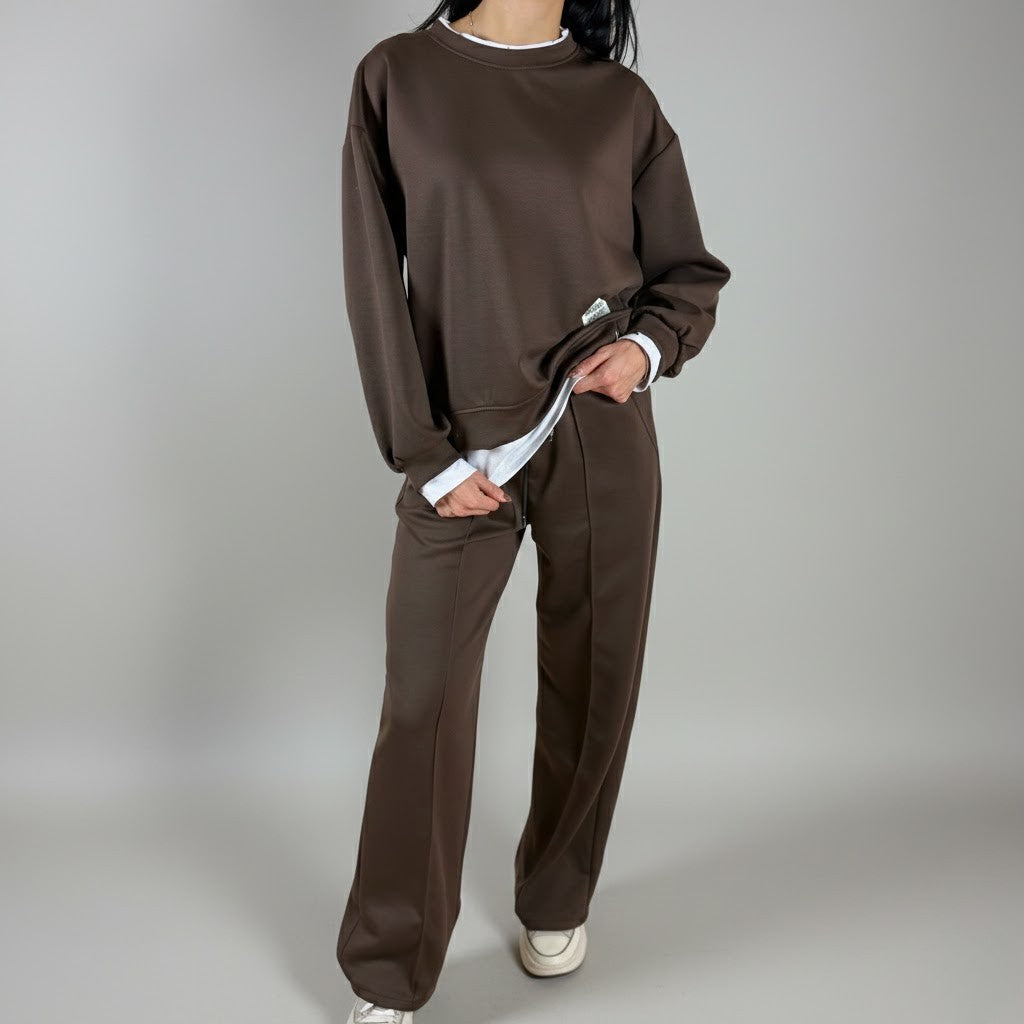 Кафяв комплект с широк крачол