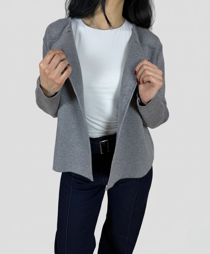 Тази сива жилетка с модерни златисти копчета е перфектният избор за стил и комфорт. Със своето изчистено и елегантно излъчване, тя се съчетава лесно с различни тоалети и добавя завършеност на визията. Моделът е с височина 168 см. Изключителна мека материя, която не се мачка.